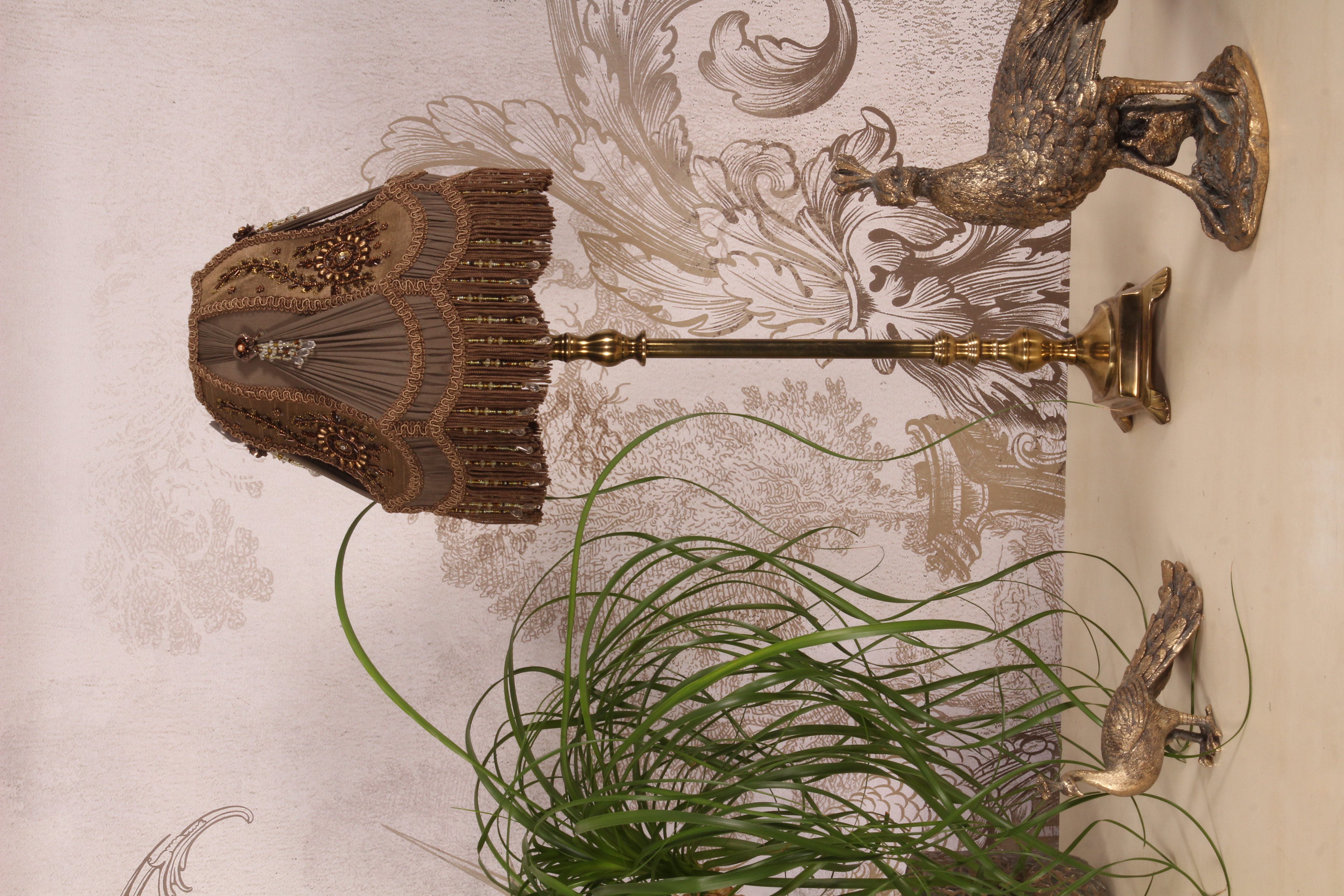 Deze elegante Victorian dome lampenkap is vervaardigd van hoogwaardig bruin textiel en verrijkt met verfijnde florale borduursels. De decoratieve afwerking met sierlijke franjes en een speelse hanger van kralen (6 cm) geeft de lampenkap een luxe, barok geïnspireerde uitstraling. De combinatie van klassieke details en de warme kleur maakt deze lampenkap een echte blikvanger in zowel moderne als klassieke interieurs. De topdiameter is 9 cm. Deze lampenkap is perfect voor woonkamers, slaapkamers of boutique interieurs waar karakter en elegantie samenkomen.